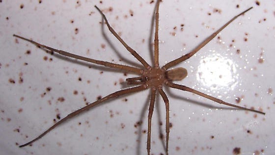 The southern house spider is often mistaken for a brown recluse but it is larger with a more bulbous abdomen covered in fine hairs. When an insect or another spider happens by the funnel web spider rushes out to subdue its prey. Body length 19-28 centimeters in females.